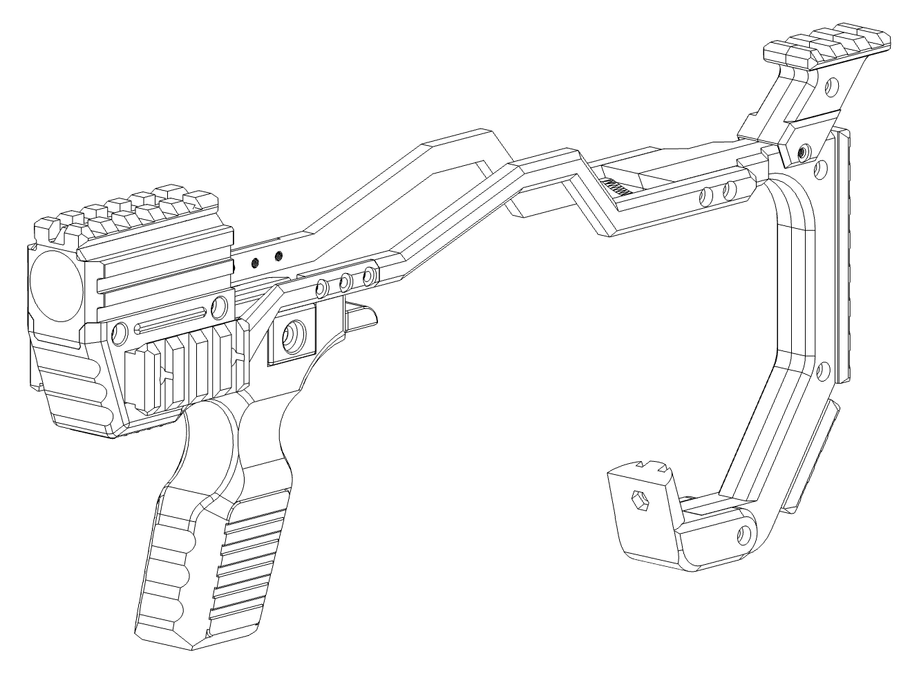 The MDX-GL17 transforms your GLOCK into a full-length carbine platform with front rails, stock compatibility, and a completely reversible install. Swap between three front-end variations to match your playstyle.
